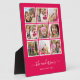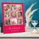 Photo Plaque with 9 square photos arranged in a grid layout each with a white border around them against an editable background colour (click customise to change background colour). You can also add your family name in a stylish calligraphy font and the year established. Perfect for wedding gifts, family keepsakes, etc.