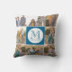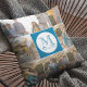 Editable Background Colour Round Monogram Photo Cushion