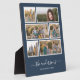Photo plaque with six photos arranged in a grid layout each with a white border around them and all against an editable background colour (click customise to change background colour). You can also add your family name in a stylish calligraphy font and the year established. Perfect for wedding gifts, family keepsakes, etc.