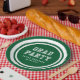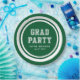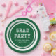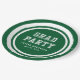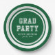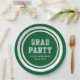 Varsity style Graduation Party paper plate featuring white stripes and the words "Grad Party" against an editable background colour (click customise to change).