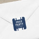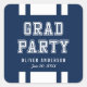 Varsity style Graduation Party sticker featuring white stripes and the words "Grad Party" against an editable background colour (click customise to change).