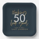 editable Birthday blue and gold simple elegant Paper Plate