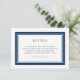 This modern classic wedding details card features an editable colour; to change the colour of the border and back background from blue to the colour of your choice, click the customise button and simple change both the front and back background colour.