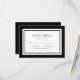 This modern classic wedding RSVP card features an editable colour; to change the colour of the border and back background from black to the colour of your choice, click the customise button and simple change both the front and back background colour.