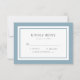 This modern classic wedding RSVP card features an editable colour; to change the colour of the border and back background from dusty blue to the colour of your choice, click the customise button and simple change both the front and back background colour.