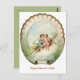 This postcard features a vintage illustration of two cherubs on a branch of roses. The message below is editable so go ahead and change it as well as the font size, style and colour.