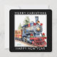 Square Christmas design with a traditional holiday decorated steam engine train done in watercolor. Merry Christmas & Happy New Year holiday design on a unique shaped square card! Edit your name on the back and the current year on the front.