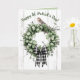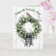 This beautiful card features an illustration of a clover leaf wreath and bow with a bird on top. On the front and on the inside are editable messages which you can change with your own greetings. You can also change the font size, style and colour. The colours on the inside and on the back can be changed, too.