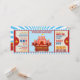 Invite everyone to the big tent for a spectacular couples baby shower at the circus with our vintage blue circus ticket invitation templates. This circus ticket baby shower invitations features red circus tent with glowing light signboard on a pale brown vintage style admit one ticket design. Colour theme is fully editable! click customise to change the background colour. Design reverse to a circus tent personalise with your family's name on an editable background colour. Now, come one, come all, step right up to the greatest circus couples shower on earth!
