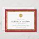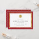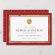 This modern classic save the date card features a faux gold foil border and circle on the front and faux gold foil polka dot back side. This card also has an editable background colour; to change it from red to the colour of your choice, click the customise button and change both the front and back background colour. Check out other matching wedding items here https://www.zazzle.com/collections/editable_color_gold_round_monogram_wedding_2-119288986699154206?rf=238364477188679314&tc=rc .