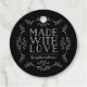 Stylish tag with the words "Made with Love" between flourishes all in white against an editable background colour (click customise to change). This tag is great for crafters and makers of handmade goods, like artists, knitters, dressmakers. It can be used when gifting your handmade goods or as product tags.