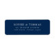 This modern classic wedding return address features the names of the wedding couple and address in white against an editable background colour; to change it from blue to the colour of your choice, click the customise button. Check out other matching wedding items here https://www.zazzle.com/collections/editable_color_border_round_monogram_wedding_3-119849489745229594?rf=238364477188679314&tc=rc .