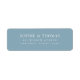 This modern classic wedding return address features the names of the wedding couple and address in white against an editable background colour; to change it from dusty blue to the colour of your choice, click the customise button. Check out other matching wedding items here https://www.zazzle.com/collections/editable_color_classic_round_monogram_wedding_1-119000260232212352?rf=238364477188679314&tc=rc .