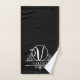 Elegant split monogram letter V Bath towel set set on a black background. Background colour can easily be changed by clicking on "Personalise this template" to "Click to customise further" then on the left hand side under layers you will find the background colour link. Click on it and change your colour!