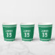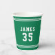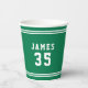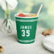 Stylish varsity style paper cups featuring your name number with fully editable colours. Font colours can be change by clicking on customise, select the texts in the "Auto Warping, Front" and "Auto Warping, Back" layers and change its colour . Stripes colour can be changed by clicking on customise and changing the colour of "line" in the "Auto Warping, Wrap" layer and background colour can also be changed on the same layer. They make the perfect paper cups for birthdays, graduation or celebrating your athlete's achievement.
