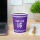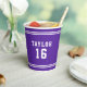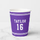 Stylish varsity style paper cups featuring your name number with fully editable colours. Font colours can be change by clicking on customise, select the texts in the "Auto Warping, Front" and "Auto Warping, Back" layers and change its colour . Stripes colour can be changed by clicking on customise and changing the colour of "line" in the "Auto Warping, Wrap" layer and background colour can also be changed on the same layer. They make the perfect paper cups for birthdays, graduation or celebrating your athlete's achievement.
