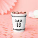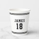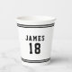 Stylish varsity style paper cups featuring your name number with fully editable colours. Font colours can be change by clicking on customise, select the texts in the "Auto Warping, Front" and "Auto Warping, Back" layers and change its colour . Stripes colour can be changed by clicking on customise and changing the colour of "line" in the "Auto Warping, Wrap" layer and background colour can also be changed on the same layer. They make the perfect paper cups for birthdays, graduation or celebrating your athlete's achievement.