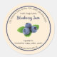 This editable label features a light background with a blue ring. In the center is an illustration of blueberries. At the top is the contact information for the company/ business, the company name and the product name. Below, is the ingredient list and the website information. All text is editable so go ahead and change the information as well as the font size, color and style. You can also change the background and ring colors.