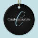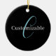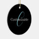 Editable Cursive Script Monogram Black Blue White Ceramic Tree Decoration