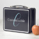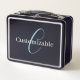 Editable Cursive Script Monogram Black Blue White Metal Lunch Box