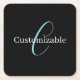 Editable Cursive Script Monogram Black Blue White Square Paper Coaster