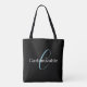 Editable Cursive Script Monogram Black Blue White Tote Bag
