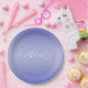 Editable Cursive Script | White & Purple Violet Paper Plate