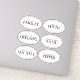 Each of these vinyl stickers are individually editable and may be used for many purposes: they are fade-proof, water-proof, and scratch-resistant. They are a little less than 3" x 2" and will fit many sizes of spice jars including a typical 4 oz spice jar. You may order them with a transparent background or a white background.