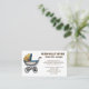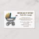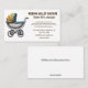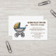 This editable business card features an illustration of a baby carriage to the left. To the right are the details of the business. On the back, there's a field for additional information. The text on both sides is editable, so go ahead and change the details as well as the font style, size and colour. The colour of the background on both sides can be changed, as well.