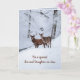 This beautiful Christmas card features a deer couple in the woods on a snowy day. On the front is a message (which can be changed to "to our daughter and son-in-law", "from both of us", "to a special couple", etc. Inside is a personalised message. You can change both messages as well as the font style, size and colour. The background colour can be changed, too. This card can be used for Christmas as well as for anniversaries, "thank you from both of us", "thanks to both of you" etc. Photo credit: Leon Seierlein, 2019.