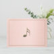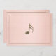 A single gold music note is framed on a black background. Great for music lovers or teachers who need to send a (music) note. Sample text on back with font suggestions if card is used for a formal occasion.