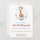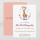This editable invitation features an illustration of a giraffe surrounded by flowers and butterflies and the information about the event below. The details of the event are editable so change the information along with the font style, size and colour. On the back is an editable field for additional information. The background colours on both sides can be changed, as well.