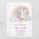 This dreamy Rainbow Castle Unicorn Birthday Invitation features a beautiful unicorn standing proudly near a magical pastel castle with rainbows, clouds, and sparkle accents — perfect for young girls who love fantasy, fairytales, and unicorn dreams. Ideal for indoor parties, garden celebrations, or princess-themed birthdays.