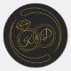 Make your announcement special with this elegant gold and black engagement sticker. Featuring a luxurious diamond and rings motif, this design is fully editable and personalizable. You can easily change the initials, font, and background colors to perfectly match your event’s theme. Ideal for sealing envelopes, decorating favor boxes, or adding a professional touch to your 'Save the Date' cards. High-end look for a sophisticated celebration.