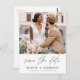 Modern and Elegant Photo Save the Date Wedding Card. The save the date invitation card includes white Hand Lettered typography and chic and simple design on a white background that you can add your customised engagement photograph picture to.