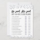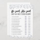 Purchase this editable game and enjoy high quality He said, She said card for your event! Guess who said it? Bride or Groom? This is a game template, You can change the questions as you wish! Silver confetti design.
