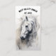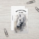 This editable business card features an illustration of a horse. The details of the business are on the back. The name of the business as well as a field for other information is on the front. The text can be changed and so can the font style, size and colour. The background colour on the back can be changed, too. This versatile business card can be used for any equine business.