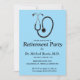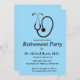 This editable invitation card features a stethoscope against a blue background. Below are the editable details of the event. This card is shown for a doctor's retirement but it can also be used for any reason to celebrate (graduation, new job, promotion, retirement) for any medical profession.