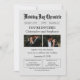 This regal, minimalist, easily personalizable newspaper wedding invitation will enthral your guests and provide the important wedding day news they need. It's a unique wedding invitation that mimics vintage newspapers with ornate, retro typography in the masthead. Under the name of the newspaper, "Wedding Day Chronicle", are important details of the wedding date, time and location. The front page story announces, "YOU'RE INVITED!" in all caps, with two photographs of the bride and groom and even more details about your wedding ceremony. The editable prompts let you keep the information being communicated as is, or put them in your own words. The back side of the invitation provides one QR code with room and instructions to add more if needed. Almost the entire invitation is customisable. Congratulations from Home Together!