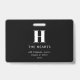 Editable Modern Monogram Name & Message | Black ID Badge