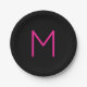 Editable Modern Pink & Black Monogram Paper Plate
