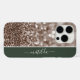 EDITABLE name Glitter Bokeh copper and deep green Case-Mate iPhone Case
