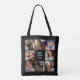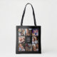 Editable photo collage tote bag featuring a black background, 8 family photos, and a text template that is easy to personalize.