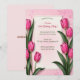 This beautiful, editable invitation features a frame of pink tulips with the details of the event in the middle. On the back, is an editable field for additional information. The text on both sides is editable, so go ahead and change the details as well as the font style size and colour. The background colour on the back can be changed, too. This versatile invitation can be used for birthdays, retirements, garden parties etc.