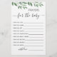 Purchase this editable card and enjoy high quality Prayers for Baby for your event! This is a card template, You can personalise the card, change the text as you wish! Baby Shower Activities! Gender Neutral Guessing game. Greenery plant design.