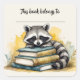 Editable Racoon and Books Bookplate Sticker