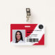 A modern, and professional editable red nurse photo id badge with logo and barcode horizontal layout.