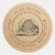 Great editable kraft vintage honey label. Text reads, "Pure Honey," with the beekeeper's name. Not a replacement for honey jar labels, (please check honey selling regulations where you live) but a simple additional label. Central illustration of a vintage skep hive. Ideal for beekeepers and honey sellers.