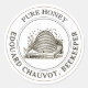Great editable kraft vintage honey label. Text reads, "Pure Honey," with the beekeeper's name. Not a replacement for honey jar labels, (please check honey selling regulations where you live) but a simple additional label. Central illustration of a vintage skep hive. Ideal for beekeepers and honey sellers.