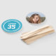 Keep cool and show your support for your athlete at a game, graduation or any event with this photo hand fan featuring a sporty font and round stripes border with editable colours (click customise, go to front layer, select the "VarsityStripesRound1" and change each of the stripe colour to a colour of your choice) and with background colour that is also editable (click customise and change background colour of front layer) on the front. On the back you can add your photo.